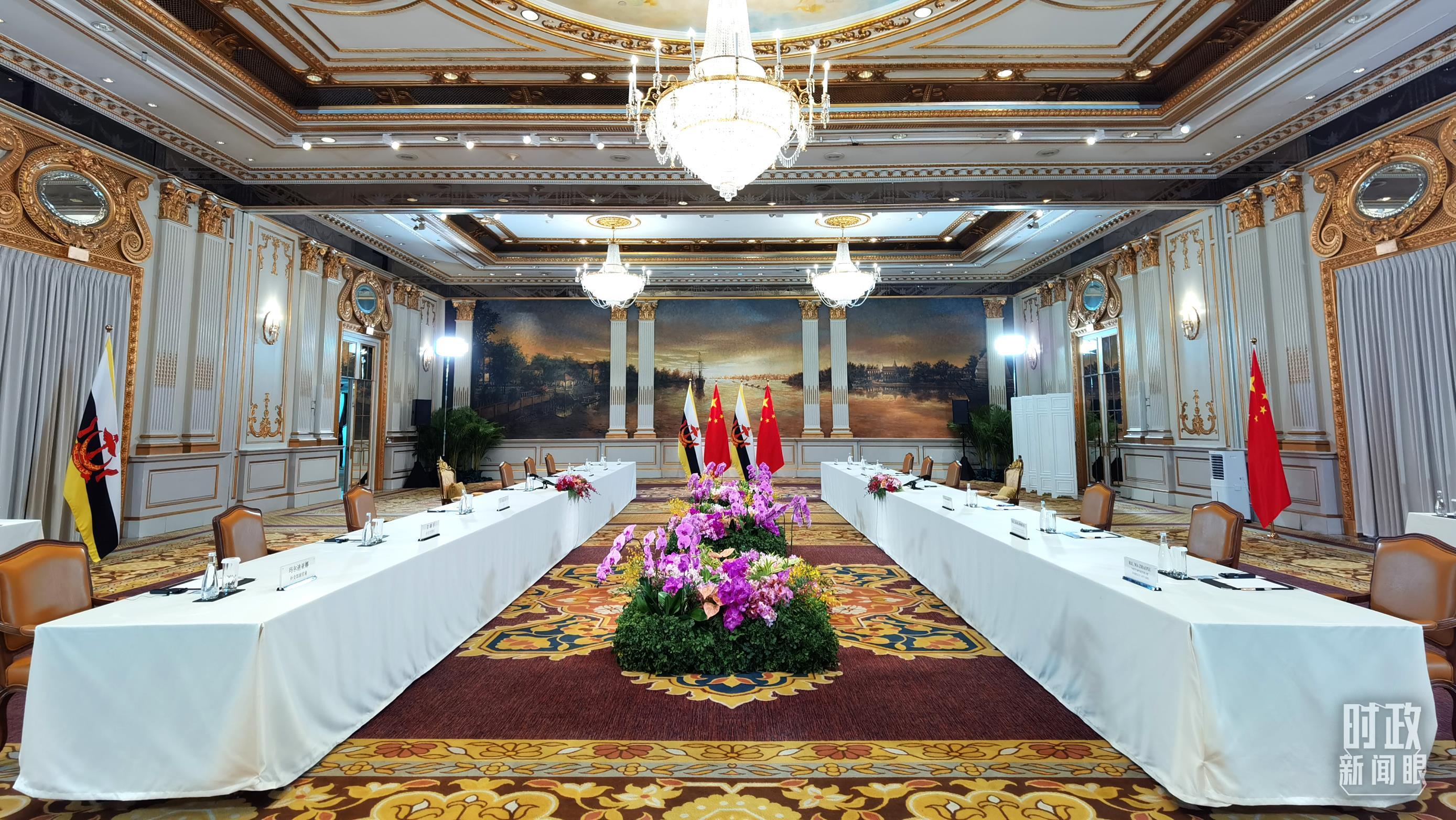 △中文会见开始前的现场。(总台央视记者郭鸿拍摄)