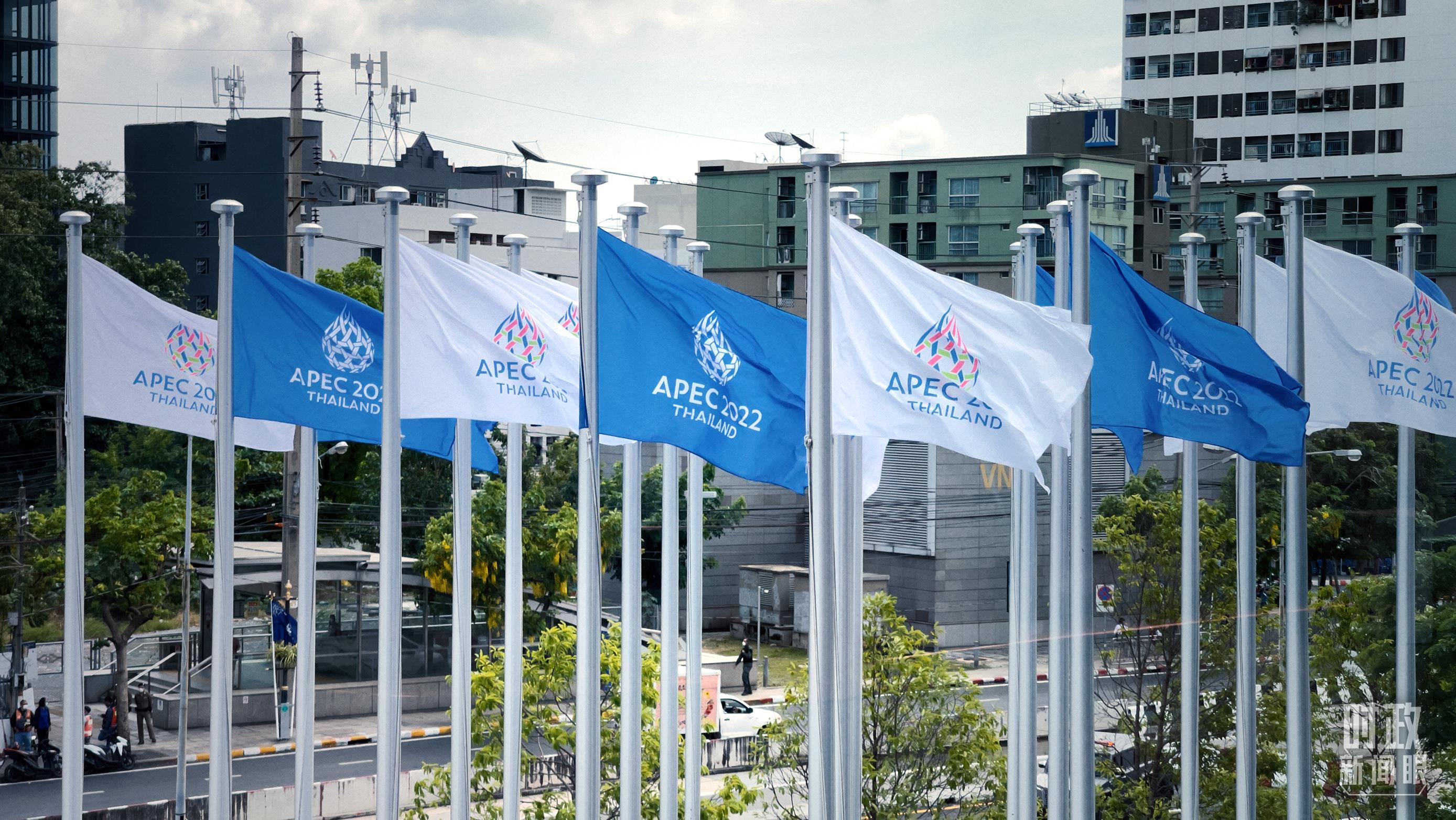 △曼谷,APEC会旗在空中飘扬。(总台央视记者鄂介甫拍摄)