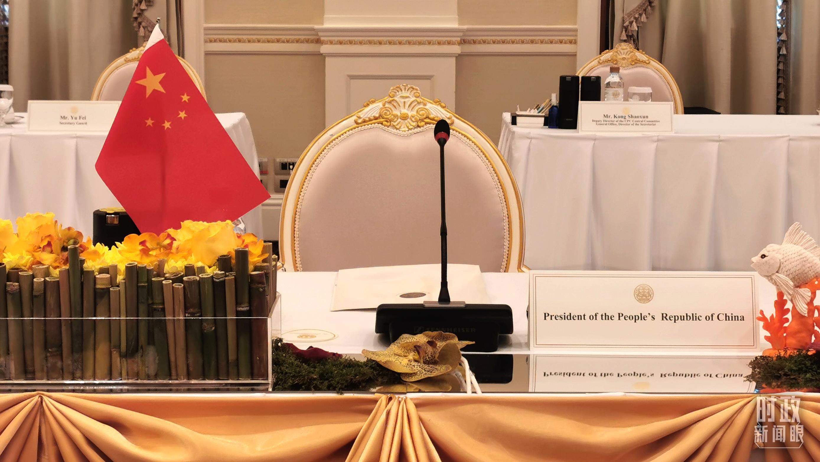△会谈现场,习近平在这里发言。(总台央视记者黄京辉拍摄)