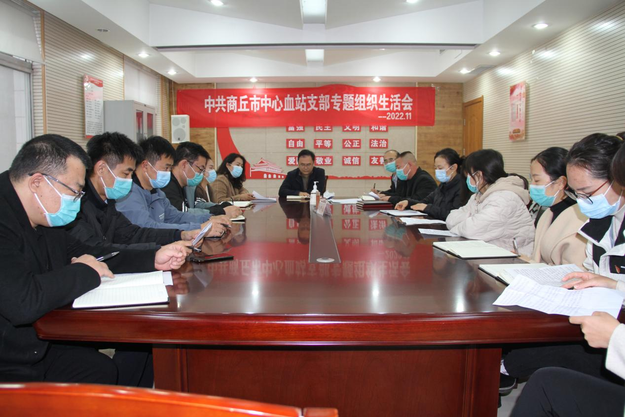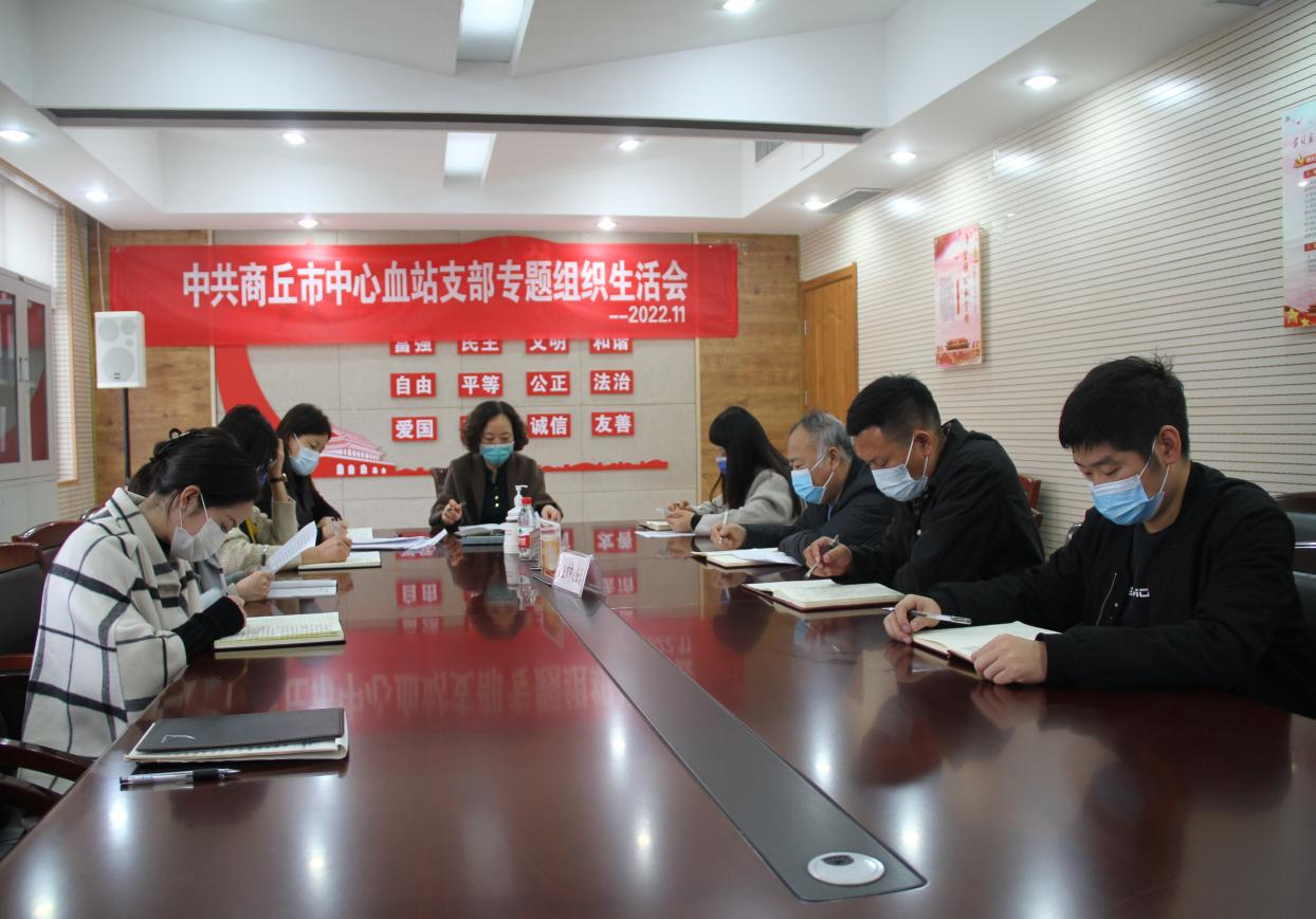 11月21日下午,中共商丘市中心血站支部组织召开“深入学习习近平总书记视察安阳重要讲话精神,大力弘扬红旗渠精神”专题组织生活会,会议传达学习了习近平总书记视察安阳红旗渠时的重要讲话,党员交流学习体会,站领导班子以普通党员身份参加了会议。本次组织生活会由行政党小组和业务党小组分别召开,行政党小组组织生活会由组长陈旭东主持,业务党小组组织生活会由小组长李海军主持。