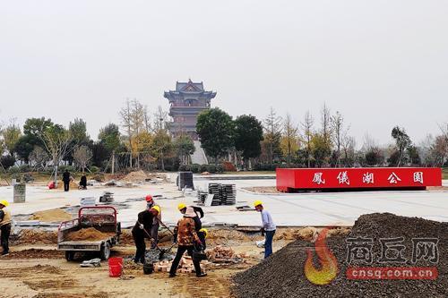12月7日,施工人员在即将正式开放的睢县凤仪湖公园铺修道路。该园经过黑臭水体综合整治后,现已成为集艺术、休闲、运动为一体的湿地公园。记者 黄业波 摄
