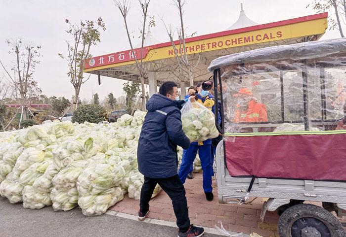 ◀为帮助菜农解决蔬菜销售问题,让菜农过个放心年,12月11日,睢阳区商务局积极携手爱心企业开展“爱心助农”活动,并将2万多斤娃娃菜捐赠给一线环卫工人,既助力菜农实现增收,又为环卫工人送去了关爱和温暖,赢得广泛好评。
