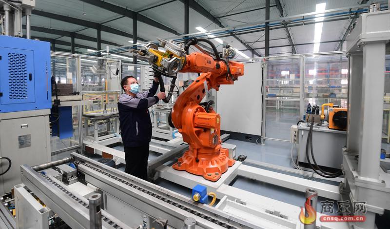 12月20日,夏邑县高新开发区河南飞江新能源科技有限公司技术人员在调试机器人。该项目总投资10亿元,主要生产新能源汽车驱动电机、驱动控制器、动力电池PACK,是三电一体的动力集成企业,建有新能源汽车动力系统转子分装、定子分装和总成装配融为一体的自动化流水线。