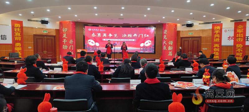 近日,中国银行商丘分行召开2023年誓师大会,动员号召全体员工以良好的精神状态,加大实体经济支持力度,切实肩负起国有大行责任担当,为推动全市经济发展贡献中行力量。