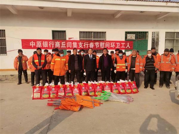 为感谢广大环卫工人的辛勤劳动,1月11日,中原银行商丘闫集支行开展情暖环卫工人活动,向常年奋战在一线的30多位“城镇美容师”送去春节的祝福和亲切问候。