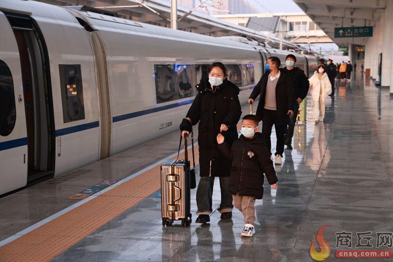 在站台上,记者遇到了在宁陵县城郊乡乔九庄村帮扶车间当主管的甘肃人牛鹏程,他和老乡一起乘坐G2023次列车回甘肃老家。26岁的牛鹏程在宁陵工作已经三四年,渐渐适应并喜欢上了商丘这座城市。他说,商丘交通便利、出行方便,又是历史文化名城,工作之余他也常常去商丘的景点逛逛。尤其是商丘优良的营商环境给牛鹏程留下非常好的印象。他说:“我们的帮扶车间是做电子设备的,遇到各种难题,都有各级政府对接解决,真是省了很多心。”