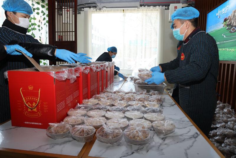 饭店工作人员在打包传统扣碗年夜饭。 本报融媒体记者 邢栋 摄