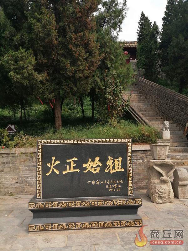 火神台下通往高台的一侧,有一块石碑,正面刻“火正始祖”四个大字。这是中国商丘火星台论证会北京专家组得出的结论。石碑背面有专家组各位专家名讳,记录下来,以资证明。
