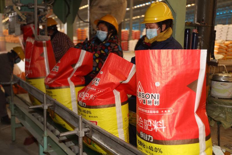 1月30日,宁陵县嘉施利公司工人正加紧生产、包装、运送化肥。春节期间,嘉施利(宁陵)化肥有限公司“火力全开”满负荷生产,日产化肥1000吨。麦田春季管理主要是追肥,尿素用量一般每亩20—25公斤。该公司每天生产的化肥,可“喂饱”约4万亩麦田。 本报融媒体记者 邢栋 摄