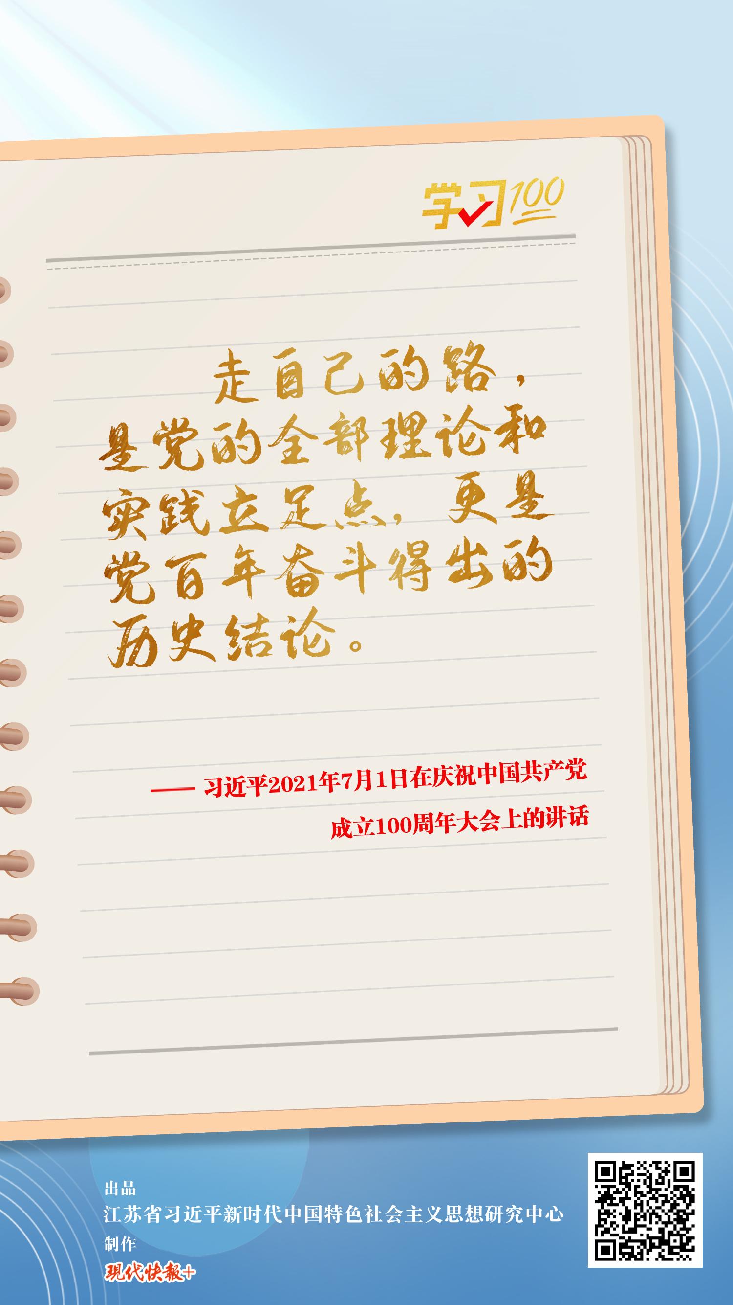 走自己的路,是党的全部理论和实践立足点,更是党百年奋斗得出的历史结论。中国特色社会主义是党和人民历经千辛万苦、付出巨大代价取得的根本成就,是实现中华民族伟大复兴的正确道路。