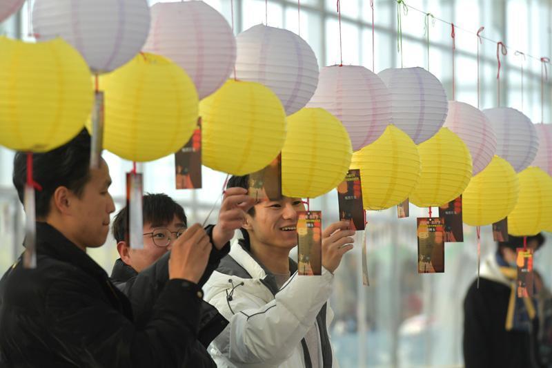 2月5日,人们在查看征婚信息。当日,以“青春有约”为主题的夏邑县龙港湾首届相亲友谊会在龙港湾田园综合体举行,通过发布征婚信息、互动交流等环节,为单身男女搭建起了爱的桥梁和相互认识交流的平台,助力单身男女脱单。