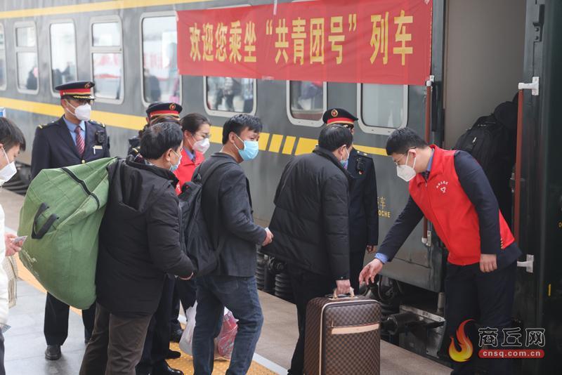 2月6日,满载1000余名旅客的3027次“共青团号”列车从商丘火车站始发,开往乌鲁木齐站。这趟列车是为满足外出务工人员出行需求加开运行的里程最长、运行时间最长的一趟“共青团号”临客列车。