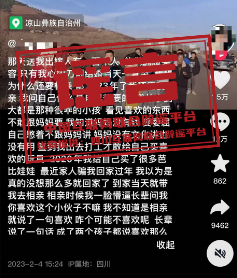 谣言:四川一女子因30万彩礼相亲隔天就结婚?