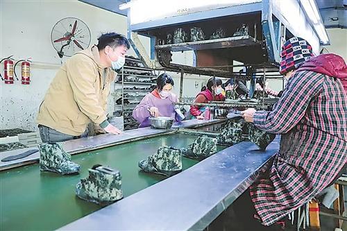 ▶2月9日,工人在永城市振华鞋业有限公司赶制订单。该公司位于新桥镇荣庄村,主要生产劳保鞋、作训鞋、雪地鞋,带动周边200余人就业,有效助力乡村振兴。