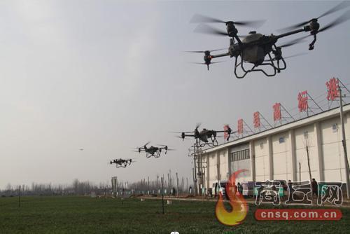 2月14日,在夏邑桑堌2万亩高标准农田项目区,工作人员正在农田里操作无人机喷洒农药。目前正值项目区内1000余亩小麦生长的关键期,工作人员利用无人机对小麦进行大规模喷药作业,为小麦高产稳产奠定坚实基础。本报融媒体记者 张壮伟 摄