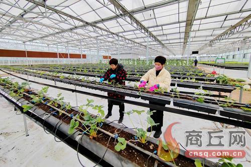 睢县粮安民富科技示范园内,工作人员在种植草莓。本报融媒体记者 黄业波 摄
