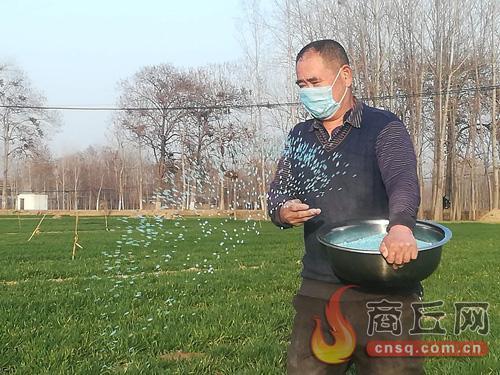 梁园区观堂镇苏堂村村民在给小麦追肥。陈 臣 摄