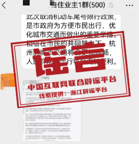真相:一条关于杭州市政府3月1日取消机动车尾号限行的“新闻稿”在网上传播,引发关注。经当地相关部门调查核实,该信息为杭州一小区业主微信群内讨论某人工智能应用时,一位业主尝试用人工智能技术自动生成的文字稿件,文章被其他业主截图转发,导致错误信息被传播。据了解,警方已介入调查,涉事业主已在微信群里公开道歉。(来源:浙江辟谣平台)