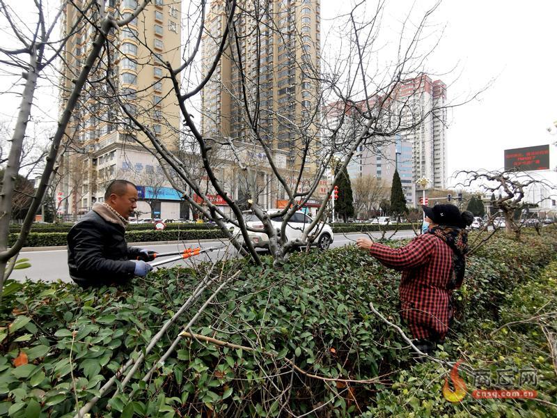 2月15日,园林工人对绿化树木进行修剪。春回大地,绿化树木即将由休眠期转入生长期,此时正是绿化树木修剪的最佳时期。为保持树木树形美观,科学合理调节树木生长发育,连日来,市园林部门组织人员对公园、广场、道路两旁行道树木进行整形修剪。