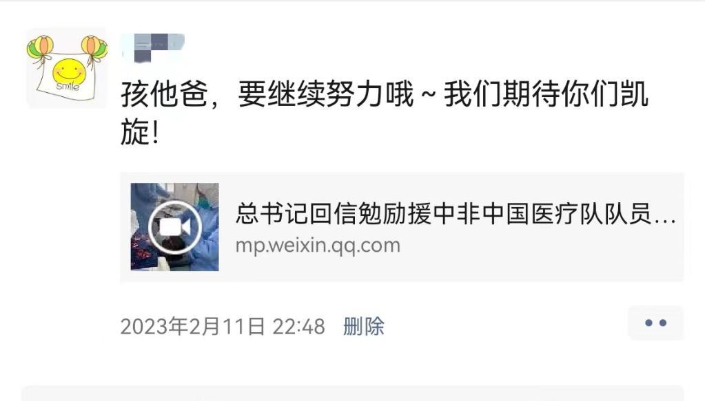 针灸科医生郝亚波表示,总书记的回信令他既感到光荣,更感到责任。33岁的郝亚波,儿子出生时也没能陪伴在妻子身边。郝亚波妻子是手术室护士,同为医者,能够理解他的缺席。看到总书记回信的新闻后,她第一时间在微信朋友圈转发,附上字短情长的话语——