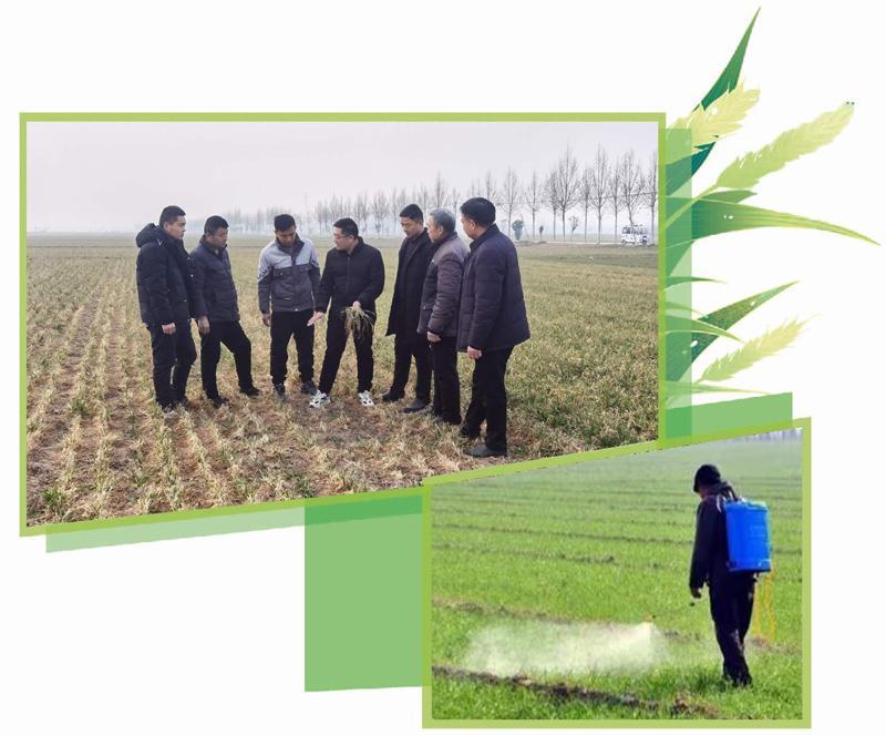 农技专家刘广伟指出,当前,示范区旺长苗占有一定比例,部分晚播麦苗小苗弱,苗情两极分化明显,春季冻害、渍害、倒伏风险较大,已有部分麦田出现轻度冻害、渍害等现象。针对返青期苗情,早春要镇压划锄,适时浇水保墒,当日平均气温稳定通过6℃以后,选择晴好天气于上午10时至下午4时,及时化学除草,压低病虫基数;一旦发生冻害,要及时采取追肥、叶面喷肥等措施,促进恢复生长。弱苗以促为主,温度回升后适时灌水施肥,因苗施好拔节肥,促进苗情转化升级,旺苗以控为主,返青至起身期采取镇压化控或深锄断根,抑制分蘖滋生,减轻冻害风险,推迟春季肥水管理。