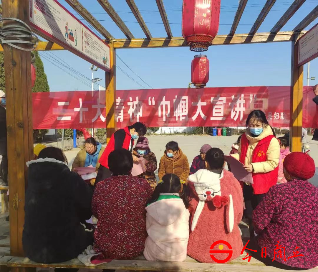 巾帼志愿者到乡村宣讲党的二十大精神。