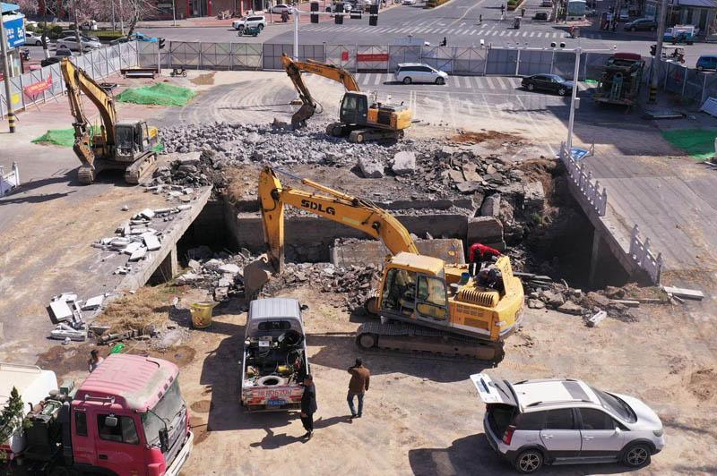 3月13日上午,在文化路与长征路交叉口西侧,工程机械正在万堤河桥面进行施工。记者了解到,万堤河桥从3月10日~11月30日进行全封闭施工,提醒市民注意绕行。原东西方向通行车辆可向南绕行宜兴路、长江路,向北可绕行丽晶路、八一路、团结路。