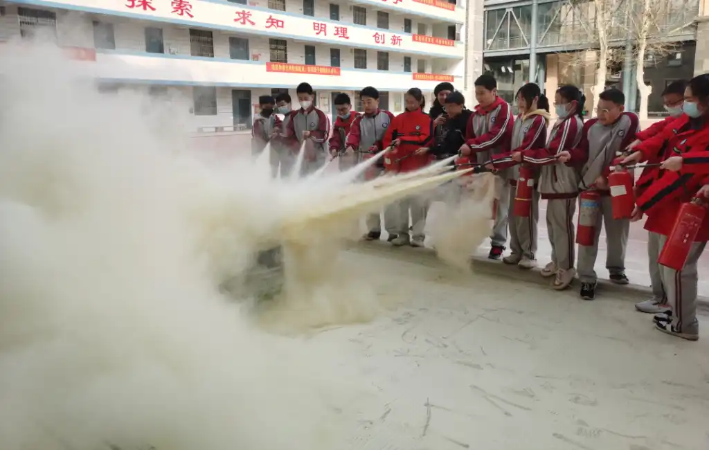该校副校长曾产作了总结讲话,并对学生提出四点希望与要求:一要提高思想认识,重视安全知识学习,学会自我保护;二要强化安全意识,熟练掌握灭火器的使用方法,提高应对火情能力;三要远离危险源,严防安全事故发生,确保生命健康与安全;四要齐心协力,众志成城,争创平安校园。