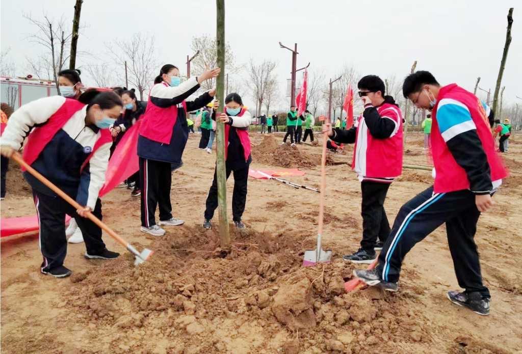 参加活动的志愿者在睢阳区古城西关“九州通衢”的牌坊下集合后,该校带队老师马铭泽作简短的动员后,志愿者们来到植树区,大家扛上铁锹,开始了紧张有序的植树劳作。志愿者们以小组为单位,分工合作,相互协作,个个干劲十足。他们有的帮忙扶树苗,有的挥舞铁锹填土,干得热火朝天。
