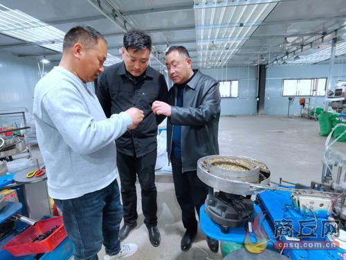 夏邑县郭店镇人大主席李胜哲(右一)、党委副书记杨亚东(中)到状元塑胶科技有限公司走访企业生产情况,并就安全生产提出建议。本报融媒体记者 王 冰 摄