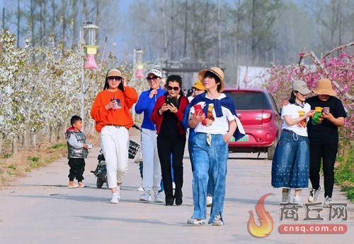 夏邑县郭店镇王刘庄村千亩果园内,梨花、桃花盛开,成为乡村旅游打卡地,前来观光的游客络绎不绝。本报融媒体记者 韩 丰 摄