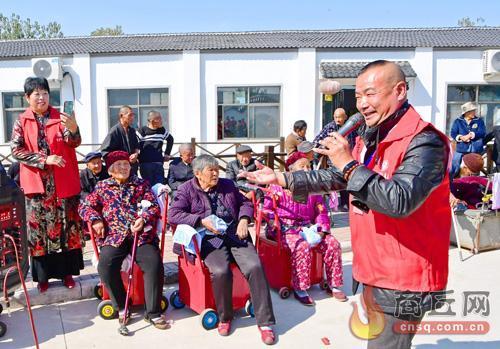 夏邑县青年志愿者在郭店镇敬老院慰问演出,让老人过足戏瘾。 本报融媒体记者 韩 丰 摄