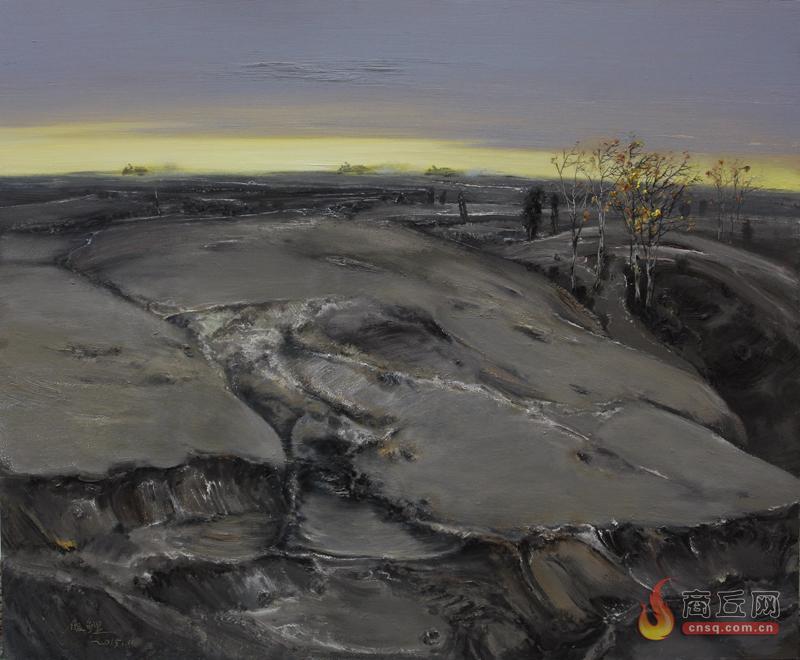 近年来,程俊鲤致力探索大山水系列创作,将中国山水画的浓淡有致、写意潇洒的特色,与油画写实技法融合在一起,加一些综合材料,中西合璧,营造出令人遐想的超然意境。这是绘画语言的一种探索,将西方造型观念与中国画的观察与表现方法进行融合借鉴,以心写形,以意造形,画面带有迷蒙空灵的诗意感。黄河故道在画家的笔下,冷峻而奔放,厚重而轻灵,介于“像”与“不像”之间,像飘忽的思绪,像心灵深处飘荡的音乐,又像五千年文明底蕴中激荡的音符。正如画家自述:“一个真正的艺术家,他所要做的决不是山水导游、城堡标识,而是一个试图打通所有心灵密码的高明术士,从而通过他的诗书绘画,为人们开启智慧与解脱的那扇重门,放我们的灵魂寻找自由。”