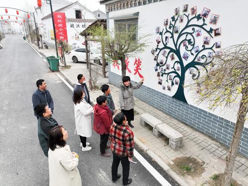 3月27日,民权县花园乡赵洪坡民俗文化村60位村民笑脸组成的“笑脸墙”,吸引很多人驻足观看。为展示新时代花园乡广大人民群众积极向上的精神风貌,该乡新时代文明实践站通过“笑脸墙”建设,进一步推动文明村镇创建,让花园乡变得更加文明、美丽、幸福。 王自力 摄
