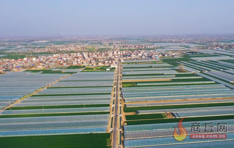 航拍夏邑县车站镇秦楼蔬菜专业村大棚黄瓜种植基地。