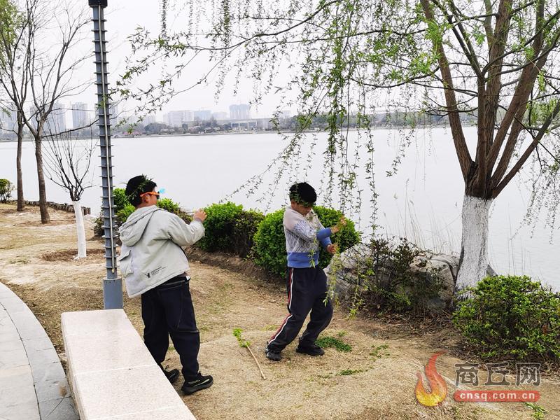 4月2日,记者在日月湖景区看到,两名孩子正在扯拽细嫩的柳枝。望有关人员加强巡查管理,别让不文明行为折煞好风景。