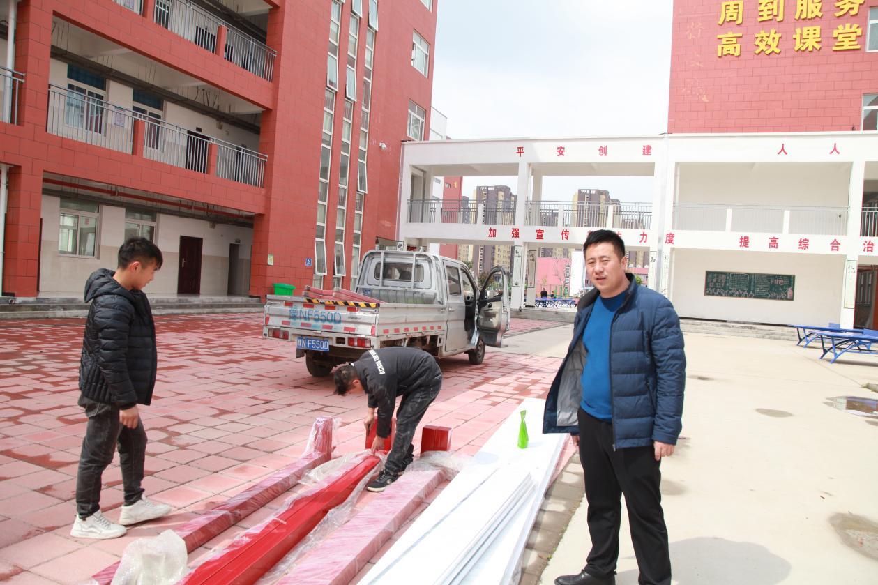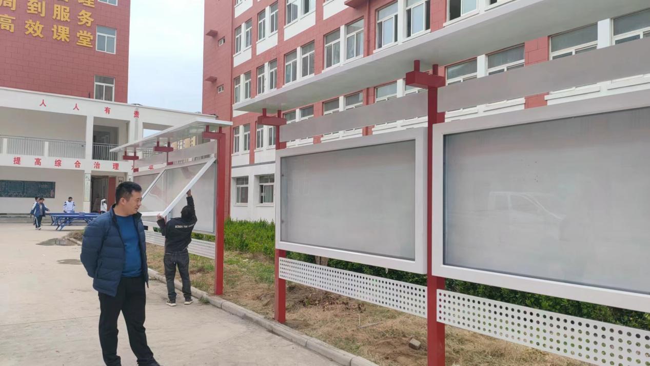 4月5日上午,中州办事处朱台村委会书记孙起营走进商丘市回民中学教育集团示范区第二中学,为学校捐赠两套宣传栏。