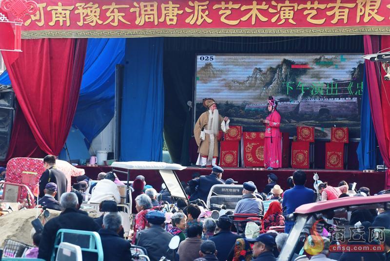 4月4日,夏邑县文化广电旅游局在罗庄镇新集村开展送戏下乡活动,让村民过足戏瘾。记者 韩 丰 摄