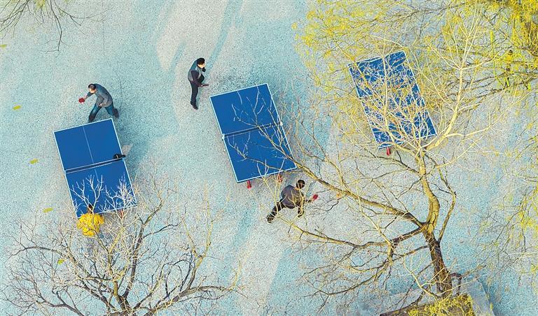 4月6日清晨,市民在京港绿地打球健身。近年来,梁园区加快推进全民健身公共服务体系建设,辖区内各公园绿地增添了不少健身器材,激发了全民健身热情。记者 崔 坤 摄