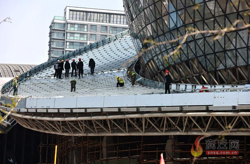 昨日,工人们在商丘文化艺术中心进行外部装饰施工。记者在现场看到,主体完工后的商丘文化艺术中心,内部装修也已开始。商丘文化艺术中心总建筑面积67033平方米,其中群艺馆7367平方米、大剧院25645平方米、科技馆14756平方米、地下工程19265平方米。