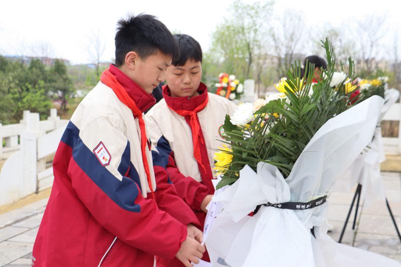4月4日,民权县的小学生向革命英烈敬献鲜花。据悉,清明节前夕,该县组织中小学生来到县革命烈士陵园开展祭扫活动,缅怀革命先烈,传承红色基因,接受爱国主义教育。 本报融媒体记者 闫鹏亮 摄