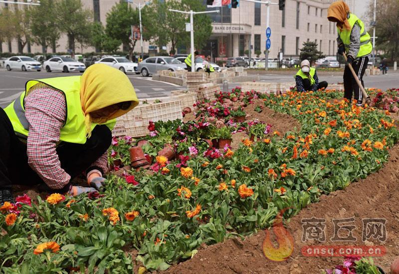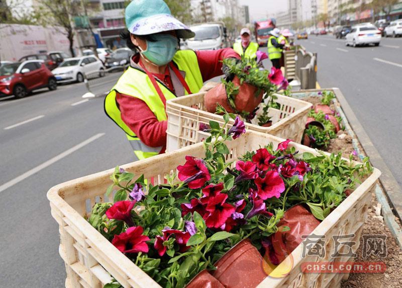 4月11日,在神火大道与八一路交叉口西南角,园林工人正在栽植新绿。当日,记者在街头发现,民主路、文化路等多条道路都有园林工人忙碌的身影。 本报融媒体记者 魏文慧 摄