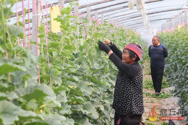 4月18日,宁陵县孔集镇王福来村村民在甜瓜棚内疏果。一棵棵青翠欲滴的甜瓜秧,郁郁葱葱、长势喜人,一派绿意盎然、生机勃勃的景象。现在正是大棚甜瓜成熟的关键时期,甜瓜品相好坏、甜度高低等全靠管理,农民在瓜秧架间穿梭,做好生产管护,以确保甜瓜的品质和产量。 记者 邢栋 摄