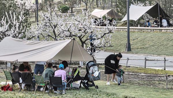 近期气温逐渐升高,阳光明媚、百花盛开,不少市民走出家门感受春的气息,与亲朋好友共赴一场春天的约会。周末,在商丘古城景区,我们常常能看到这样的场景:一顶顶露营帐篷搭建了起来,地面上放着野餐垫和折叠露营椅,市民们三三两两聚在一起,谈天说地,享受户外美好时光……