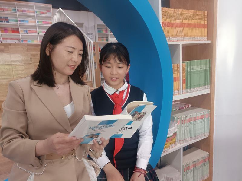 张尚芮朵和班主任宋春丽一起阅读。 本报融媒体记者 戚丹青 摄
