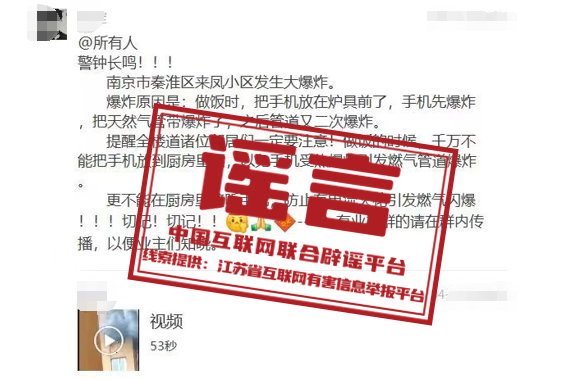 谣言:南京一小区因手机起火引发燃气爆炸?
