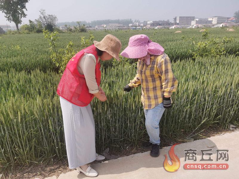“受前期气温偏高的影响,我市小麦抽穗扬花期比常年提前两天以上,目前,我市小麦陆续进入抽穗期,小麦赤霉病暴发流行气象风险极高,要密切注意防控。”日前,在虞城县杜集镇向阳村宜家种植养殖专业合作社,市科技特派员、市乡村产业发展中心高级农艺师张伟和农艺师王娜等与向阳村党支部书记杨满意交流当前麦田管理情况,指导小麦赤霉病、蚜虫等病虫害综合防控方法,面对面为农户答疑解惑,指导农户提前做好病虫害防控。