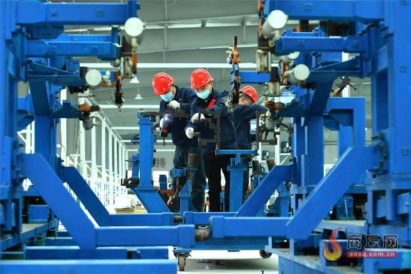 4月26日,工人在夏邑县高新产业区内的一家新能源汽车生产车间安装生产设备。今年以来,夏邑县加快推进新旧动能转换,围绕新能源、高端装备、纺织服装等产业集群,持续推动工业和县域经济高质量发展。