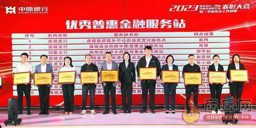 会上,表彰了10个优秀普惠金融服务站,10个站点获惠农业务突出贡献奖,并颁发荣誉奖牌。同时,3个优秀普惠金融服务站站长就如何创新服务模式、提升营销能力、扩展客群策略等方面作了经验分享。