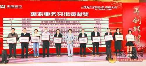 普惠金融创佳绩,表彰先进学典范。今后,中原银行商丘分行惠农业务将继续扬帆起航,全体惠农人员秣马厉兵,砥砺前行,坚决贯彻执行总行战略,奋发图强,深耕乡村。